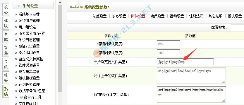 1、后臺(tái)-系統(tǒng)-附件設(shè)置,添加bmp